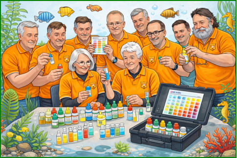 Wir freuen uns, dass unser jährlicher Wasserabend im März weiterhin guten Zuspruch findet!10 Mitglieder und 3 Gäste nutzten die Gelegenheit, Wasserproben zu analy-sieren und den Austausch unter Gleichgesinnten zu suchen.Wassertest-Koffer standen allen Interessenten wieder ausreichen zur Verfügung.